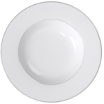 Caractéristiques : porcelaine premium bone blanche à liseré argenté | dimension : Ø 22 cm | ne passe pas au micro-ondes ni au four | collection Silver.