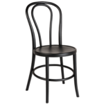 Indémodable, la chaise bistrot en bois teinté noir apporte une touche vintage et conviviale à vos réceptions. Avec ses lignes courbées et son assise en bois moulé, elle s’intègre aussi bien dans une décoration champêtre que dans une ambiance urbaine plus contemporaine.