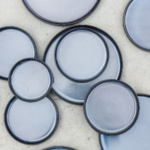 Caractéristiques : porcelaine émaillée réactive | dimensions : Ø 13,5 x H 2,3 cm | coloris bleu foncé profond aux reflets nuancés | empilable et résistante | compatible micro-ondes | ne passe pas au four | collection Pila.
