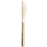Couverts en acier inox finition champagne, au design moderne et raffiné. Idéal pour sublimer vos tables de réception. Convient aussi bien comme couteau à entremet que comme couteau à dessert.
