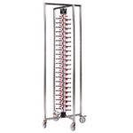 Caractéristiques : capacité : 84 assiettes | dimensions : H 189 x L 48 x P 48 cm | structure inox | modèle sur roulettes | poids : 21,5 kg | supports réglables | 4 roues pivotantes